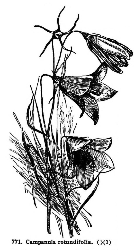 The bellflowers were another family that had been with Bailey his whole life, since the days when he would wander the dunes along Lake Michigan with Asa Gray’s Manual of Botany identifying plants like the Campanula rotundiflora, at right, which is common among the sand dunes of western Michigan. He remembered in The Garden of Bellflowers that he “had grown many of them since boyhood” (p. 1). Perhaps such wild flowers made their way into his childhood hobby gardens at home. His lifelong admiration of them also comes through in the poem below, which appeared in his poetry collection Wind and Weather in 1916. He also used the poem to conclude The Garden of Bellflowers, which would turn out to be his last book; he died the next year. It is also one of the poems included in LHBGC, pp. 120-1.